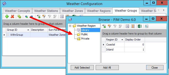 So how does one go about configuring such an awesome feature? Well, it’s pretty easy, but you need to know what you’re doing. First, you must have weather data for at least two Weather Stations in the system. Once you have that, you are ready to configure the Weather Regions. Weather Regions determine how the weather data will get populated in the Custom MetrixND Model. They can be individual Weather Stations or Weather Zones and can be given any name you’d like (e.g., coastal and inland). To create a Weather Region, go to Tools -> Weather Configuration, and on the Weather Regions tab, simply press the green plus sign in the top-left corner and a record will be inserted.