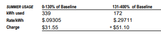 Below are the July and August bill charges. Dipping into Tier 2 cost an extra $118.